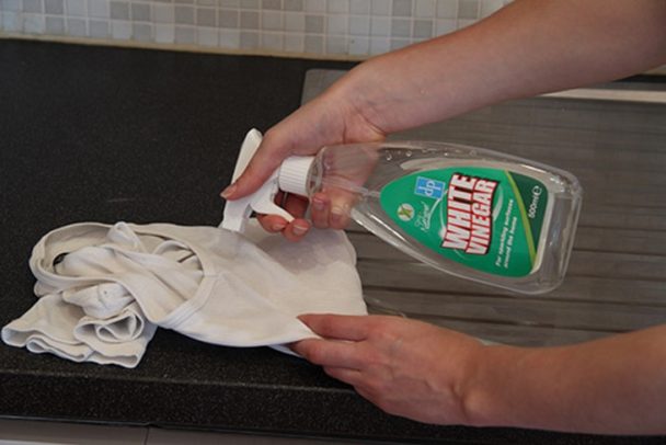Ocet jest wspaniałym środkiem do prania białych ubrań. Wystarczy dodać szklankę octu do prania. Sprawdza się również w usuwaniu żółtych plam pod pachami.