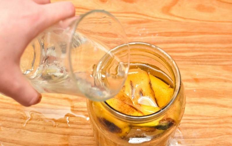 Skórkę z dwóch bananów zalej 2 l wody i zostaw na 2 dni. Powstałą mętną ciecz przelej przez gazę lub filtr do kawy. Odfiltrowana woda zawiera wszystkie składniki odżywcze z owoców. Możesz ją używać do podlewania korzeni.
