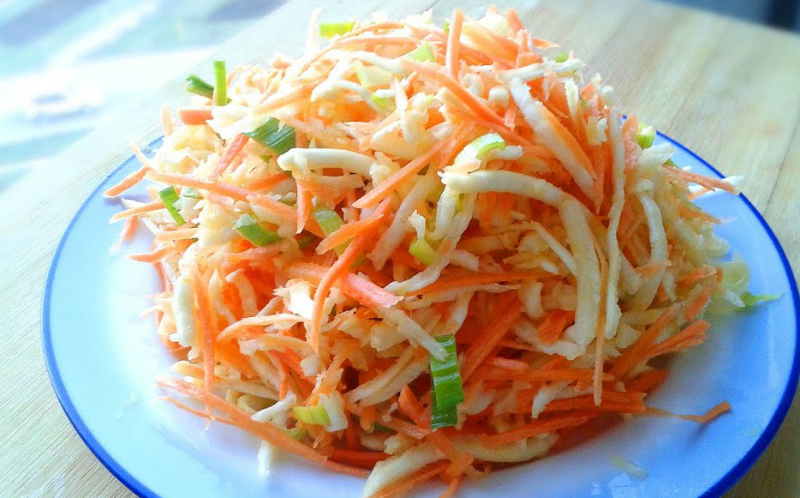 kolacja: 250 g surówki z tartego selera, marchwi i jabłka z sokiem z cytryny i oliwą z oliwek, 2 kromki chleba z otrąb owsianych